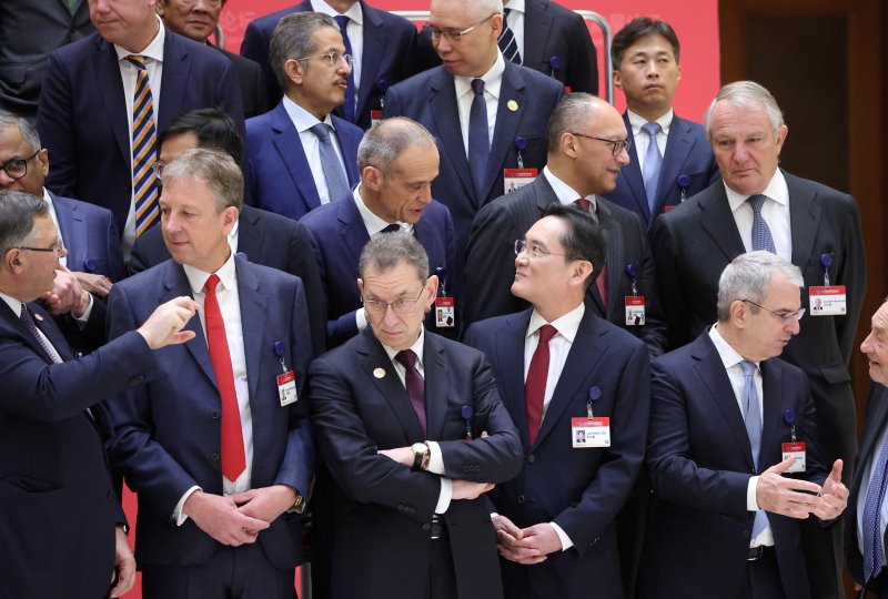 이재용 삼성전자 회장이 지난 23일 중국 베이징에서 열린 고위급 발전포럼(CDF)에 참석해 리창 중국 총리 등과 함께 기념사진을 찍고 있다. 로이터 연합뉴스 |
