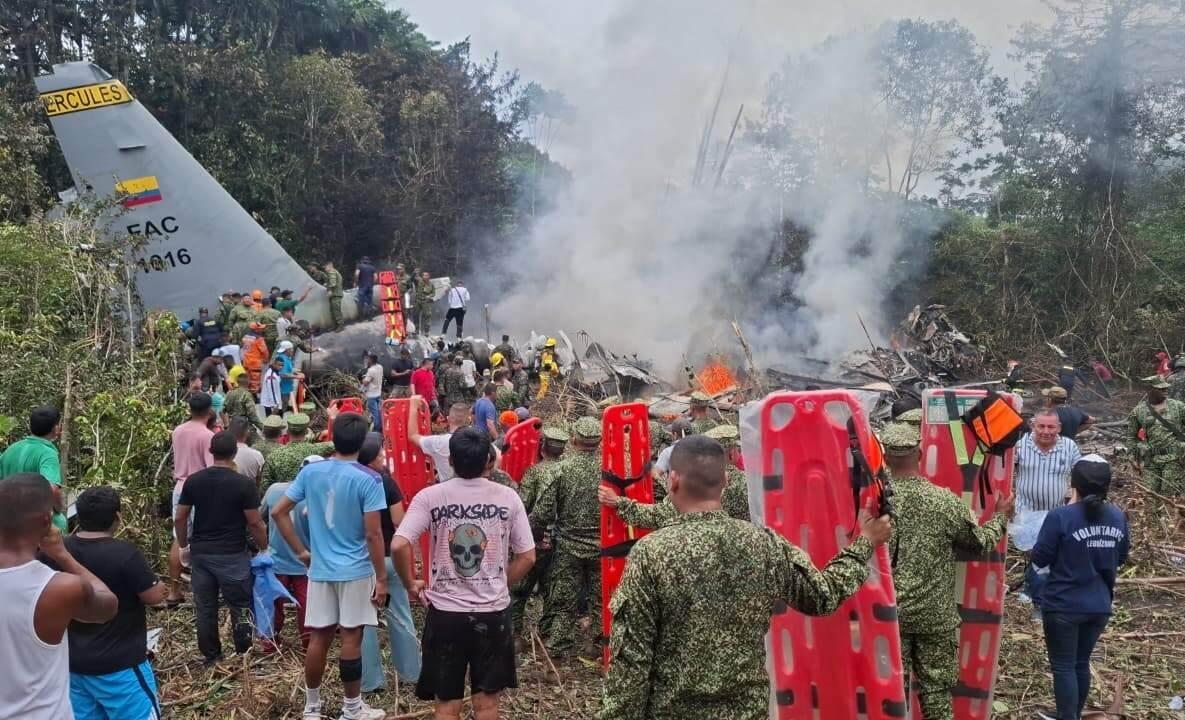 23일 콜롬비아 남부 푸에르토레기사모에서 공군 수송기가 추락해 구조 작업이 벌어지고 있다. 이번 사고로 최소 8명이 숨지고 83명이 다쳤다. 추락한 비행기는 미국 록히드마틴의 ‘허큘리스 C-130’으로 1950년대 출시된 노후 기종이어서 각종 사고가 빈번하다.