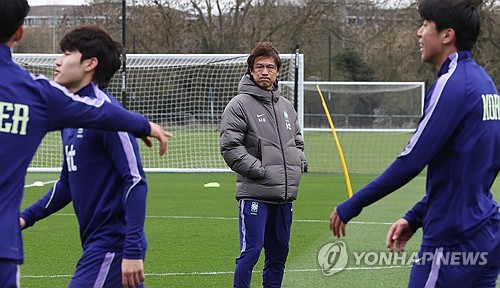 (밀턴킨스[영국]=연합뉴스) 안홍석 기자 = 홍명보호가 2026 북중미 월드컵 전 마지막 A매치 주간의 첫 훈련에서 '스리백'을 점검했다.