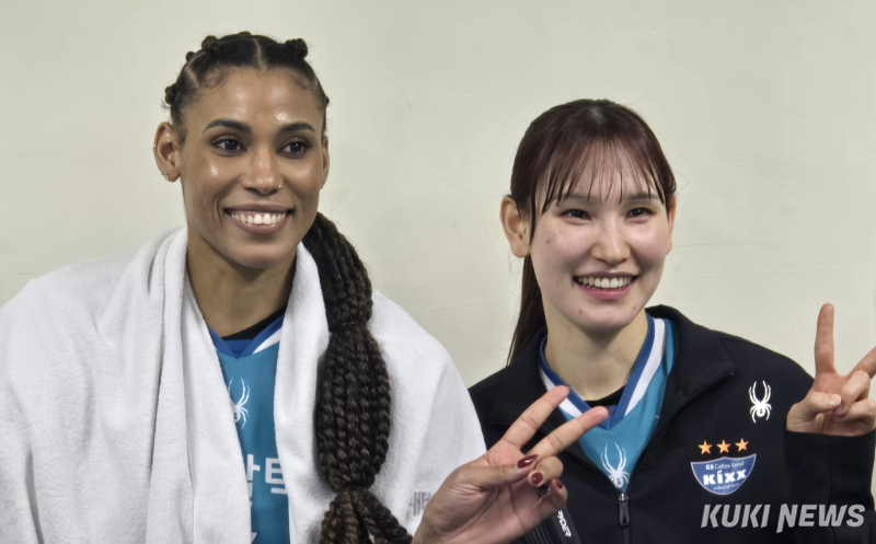 그러면서도 “코트에서 쉬는 걸 원하지는 않지만, 모든 볼을 때리고 싶지는 않다”고 웃으며 “점유율 50% 정도는 괜찮다”고 유쾌하게 말했다. 또 “다른 공격수들에게 점수가 나오면 블로킹이 덜 붙기 때문에 편하다. 다들 좋았지만, 레이나가 유독 잘했다. 본인 몫을 확실하게 해줬다”고 칭찬을 건넸다.