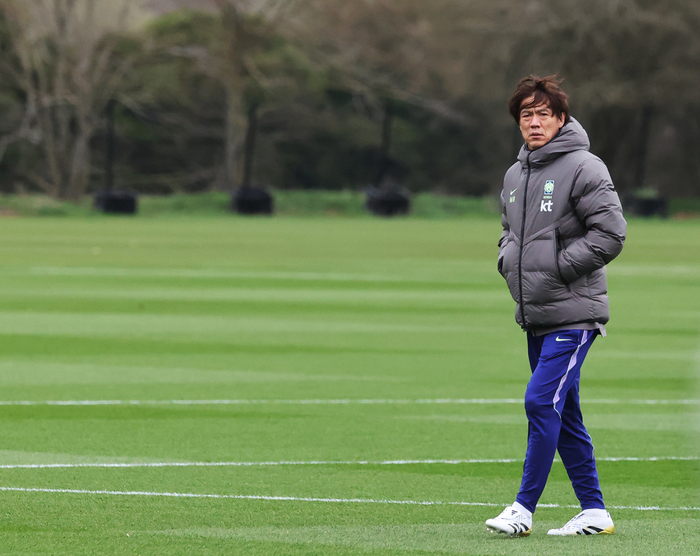 홍 감독은 25일 새벽(한국시간) 영국 밀턴 케인즈에 있는 에메르송 밸리 풋볼클럽에서 진행된 소집 첫 훈련에 앞서 취재진과 만나 “손흥민은 크게 걱정하지 않는다. 그동안 우리와 해온 시간, 역할이 있다. 스스로 잘 안다”고 강조했다. 최근 소속팀 사령탑이 바뀐 뒤 미국 메이저리그사커(MLS)에서 득점이 줄어든 것과 관련한 질문에 답이다. 그는 “다만 (손흥민은) 지금 감기 기운이 조금 있다. (이번 소집 기간) 변수가 될 것 같다. 지켜보면서 (경기)투입을 결정하겠다”고 말했다.