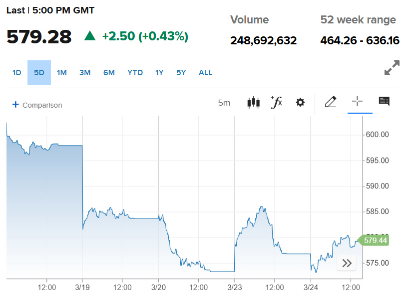 스톡스600지수 추이. 24일(현지시간) 종가 579.28. 출처 CNBC |