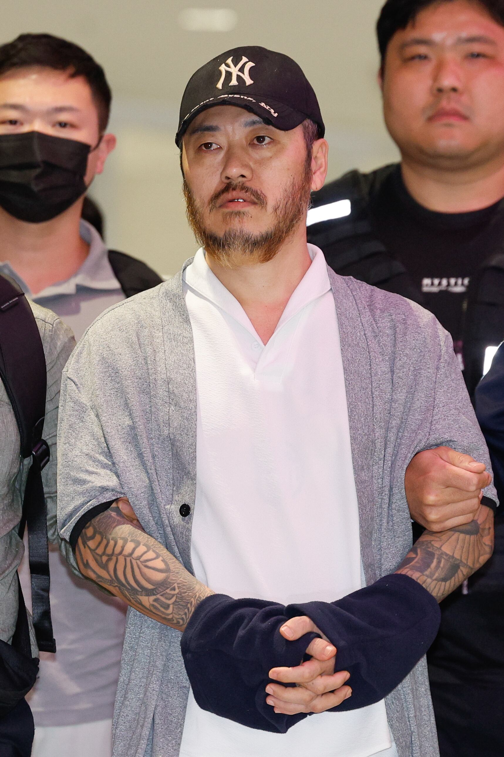 필리핀에서 교민 3명 살해, 탈옥, 국내 마약 유통 등을 일삼으며 '마약왕'으로 불리던 박왕열이 25일 인천국제공항을 통해 국내로 송환되고 있다. /연합뉴스 |