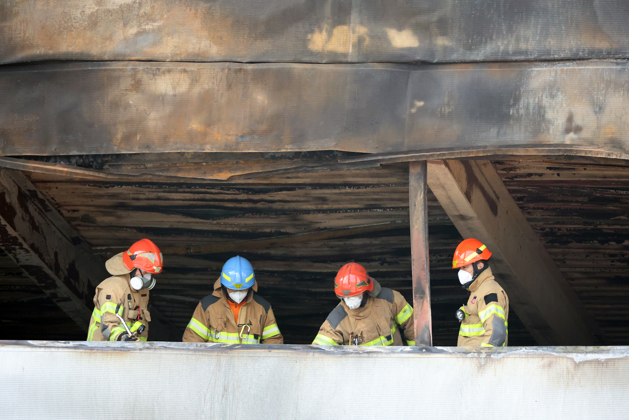 24일 대전 대덕구 소재 자동차 부품 제조업체인 안전공업 주식회사 화재 합동 감식에 나선 소방 당국 관계자들이 무허가 불법 증축으로 확인된 공장 내부에 진입해 현장을 살피고 있다. [연합] |