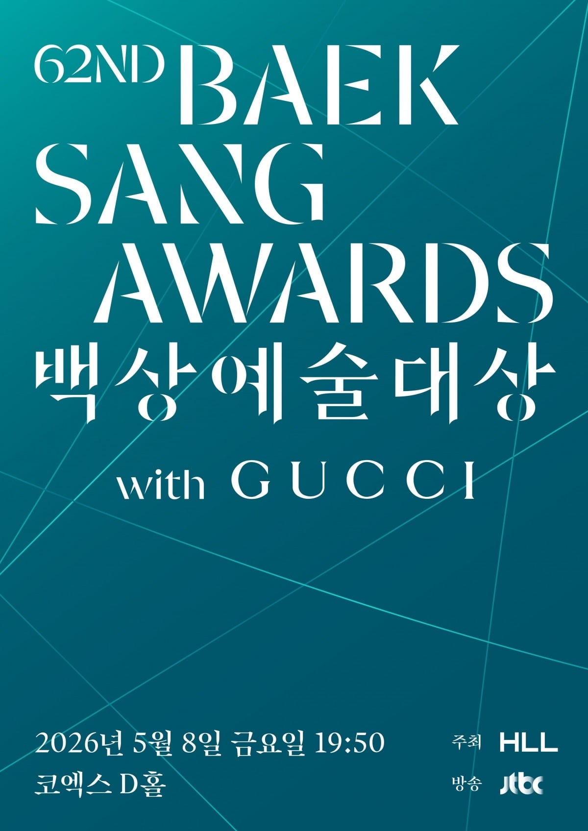 '제62회 백상예술대상 with 구찌'가 5월 8일 서울 강남구 코엑스 D홀에서 열린다. 이탈리아 럭셔리 브랜드 구찌(Gucci)가 4년 연속 파트너로 참여하며, 한국 대중문화 예술 발전을 응원한다.