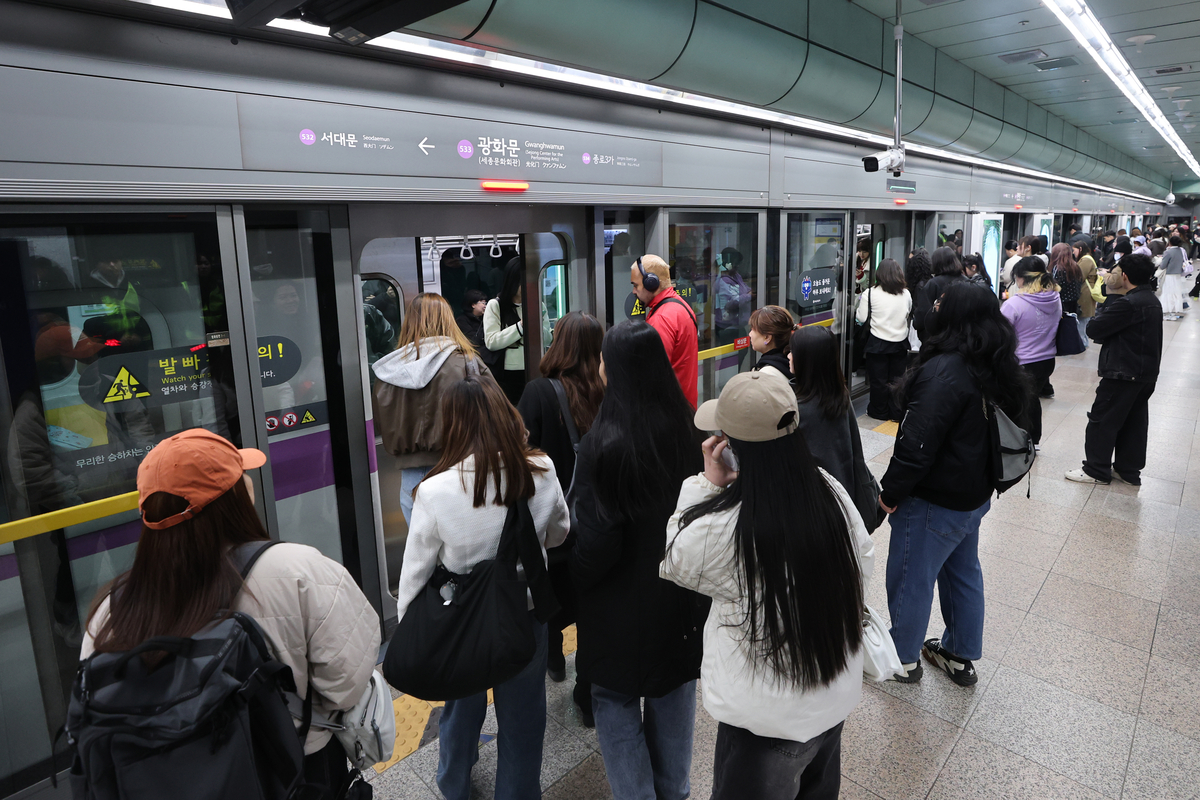 지난 21일 서울 5호선 광화문역에서 시민들이 지하철에 탑승하고 있다. 연합뉴스 |
