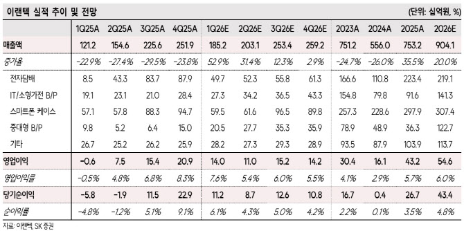 이어 “전기차는 2025년 11월 중국 체리 자동차향 46시리즈 배터리팩 공급이 확정됐으며 공급 첫해인 올해부터 연간 약 300억대 매출을 기록할 것으로 예상된다. 향후 신규 고객사 확보 및 기존 고객사 내 차종 확대가 이뤄지며 가파른 매출 볼륨 확대가 전망된다”고 부연했다.