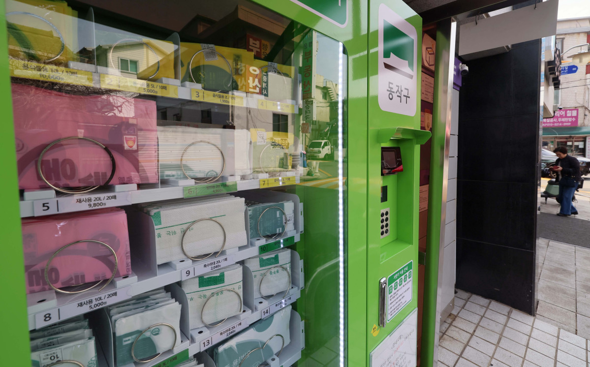 중동사태로 국내에서 종량제봉투를 사재기하는 움직임이 일고 있는 가운데 24일 서울의 한 자치구 자동판매기에 종량제봉투가 진열돼 있다. 종량제봉투를 판매하는 종량제닷컴은 홈페이지에 ‘최근 국제 정세의 영향으로 종량제봉투 제작부터 수급 및 입고 일정이 원활하지 못합니다’라는 공지를 내걸었다. 소셜미디어(SNS) 및 온라인 커뮤니티 등에도 ‘비닐대란’과 관련 소비자 불안이 빠르게 확산하고 있다. 이러한 현상은 중동전쟁 여파로 비닐 핵심 원료인 ‘나프타’ 공급이 불안정해진 데서 비롯됐다. 전체 소비량의 약 40~45%를 수입에 의존하고 있는데다, 국내로 수입되는 나프타의 54%는 호르무즈 해협을 거치는데 이란이 이 해협을 봉쇄하면서 나프타 공급이 끊길 위기에 처한 것이다. 신태현 기자 holjjak@ |