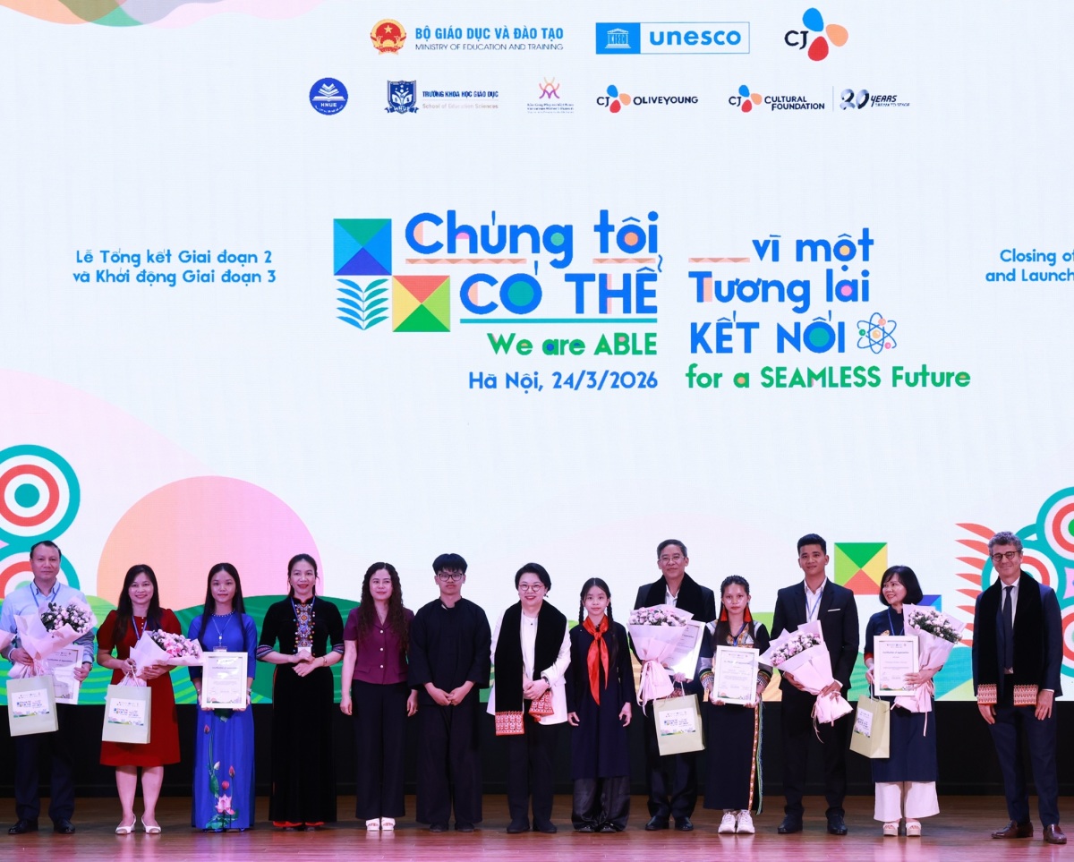 CJ는 지난 24일 베트남 하노이 국립 교육대학교에서 베트남 정부와 유네스코 관계자, 학생 등 1000여 명이 참석한 가운데 '위 아 더 에이블 페이(We Are ABLE Phase) 3' 출범식을 진행했다. 사진은 출범식 현장 모습. [사진=CJ 제공] nrd@newspim.com |