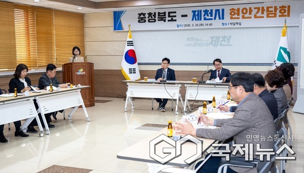 (제천=국제뉴스) 김상민 기자 = 충북도와 제천시는 24일 오후 제천시청 박달재실에서 이동옥 충북도 행정부지사, 최승환 제천시 부시장이 참석한 가운데 '충북도-제천시 현안간담회'를 개최했다.