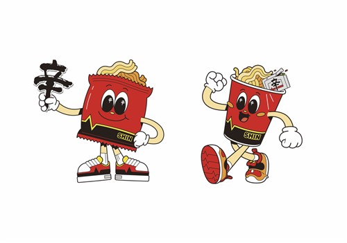 '신' 캐릭터는 라면 면발과 패키지를 연상시키는 외형에 한자 신(辛)을 눈동자와 소품에 반영해 신라면 정체성을 담았다.