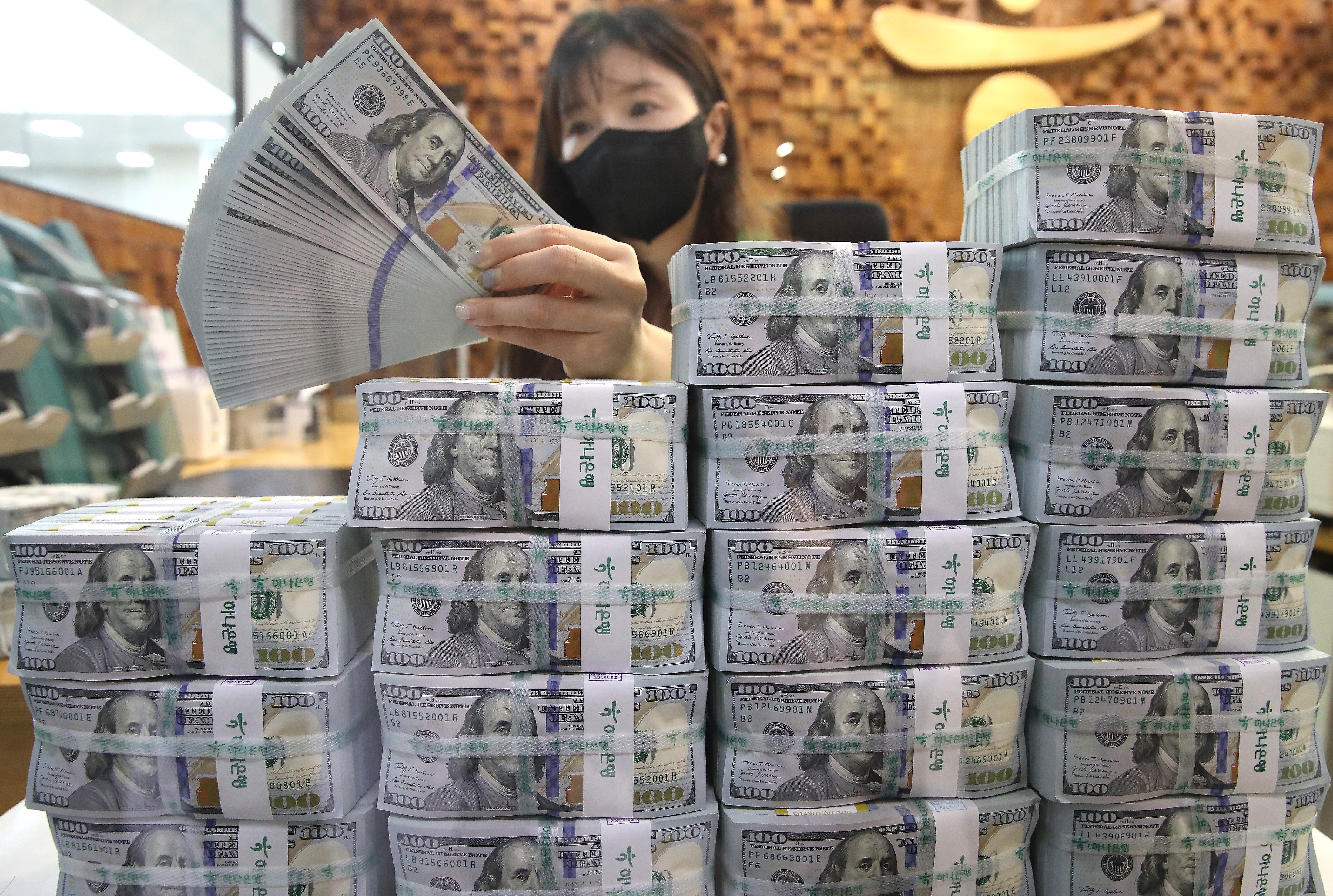 서울 중구 하나은행 위변조대응센터에서 직원이 달러를 정리하고 있다./뉴스1 |