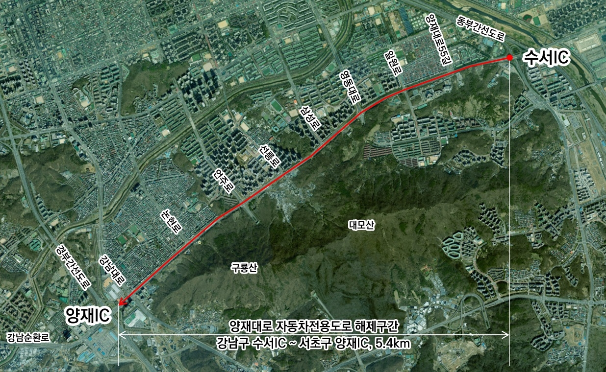 [헤럴드경제=손인규 기자] 서울시는 26일 0시를 기점으로 서울 강남구 수서IC부터 서울 서초구 양재IC까지 양재대로 5.4㎞ 구간을 자동차전용도로에서 해제한다고 25일 밝혔다.
