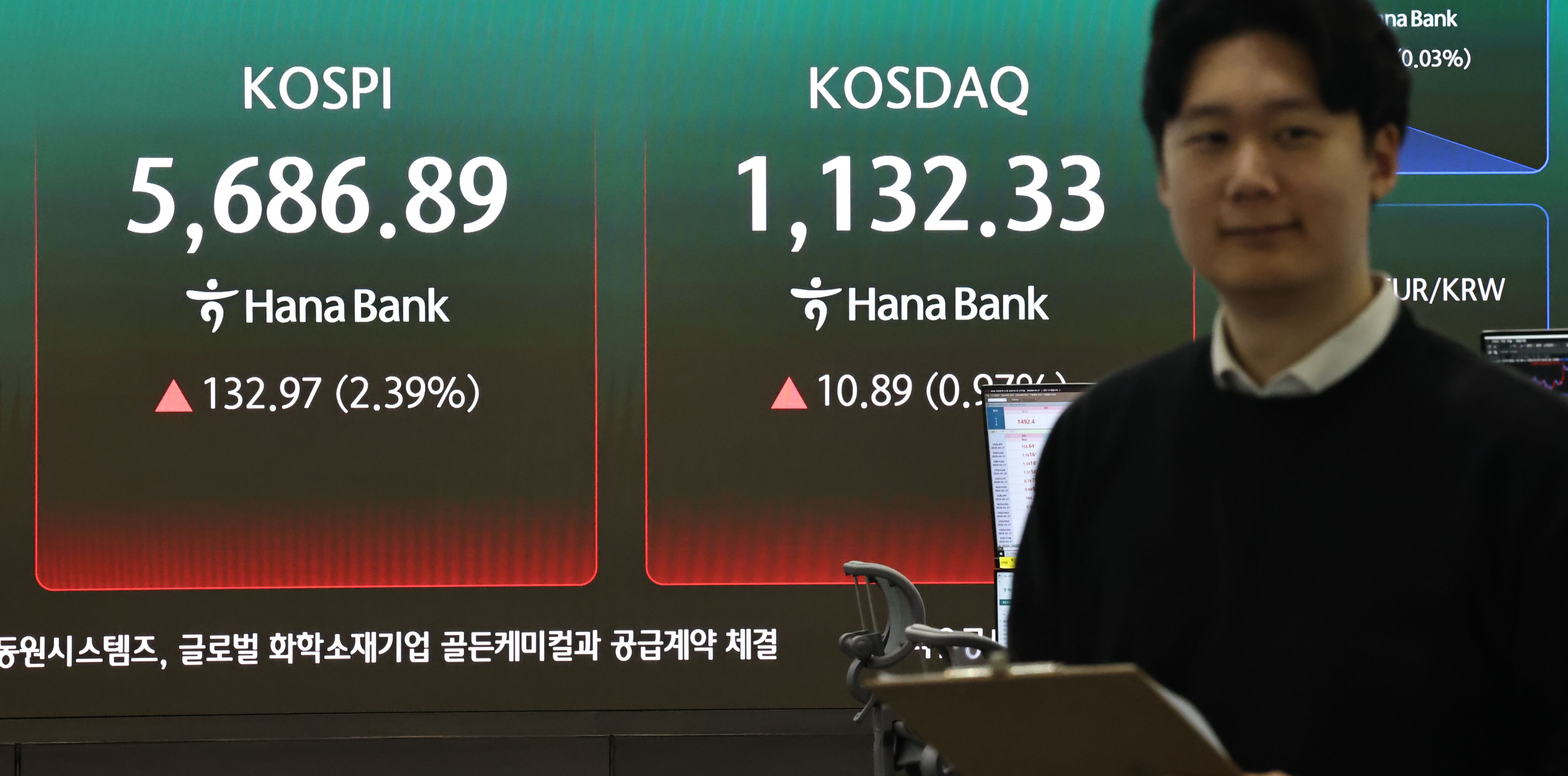 25일 서울 중구 하나은행 딜링룸 현황판에 코스피 지수 등이 표시되고 있다./연합뉴스 제공 |