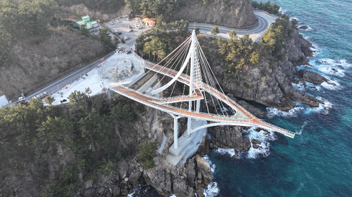 삼척 새천년도로 일원에 조성한 해상 스카이워크는 길이 100m, 높이 77m 규모의 전망 시설로, 관광객들이 동해의 푸른 바다와 수려한 해안 절경을 한눈에 조망할 수 있도록 조성됐다. 특히 투명 유리데크 위에서 바다 위를 걷는 듯한 색다른 체험을 할 수 있어 새로운 관광 콘텐츠로 기대를 모으고 있다.