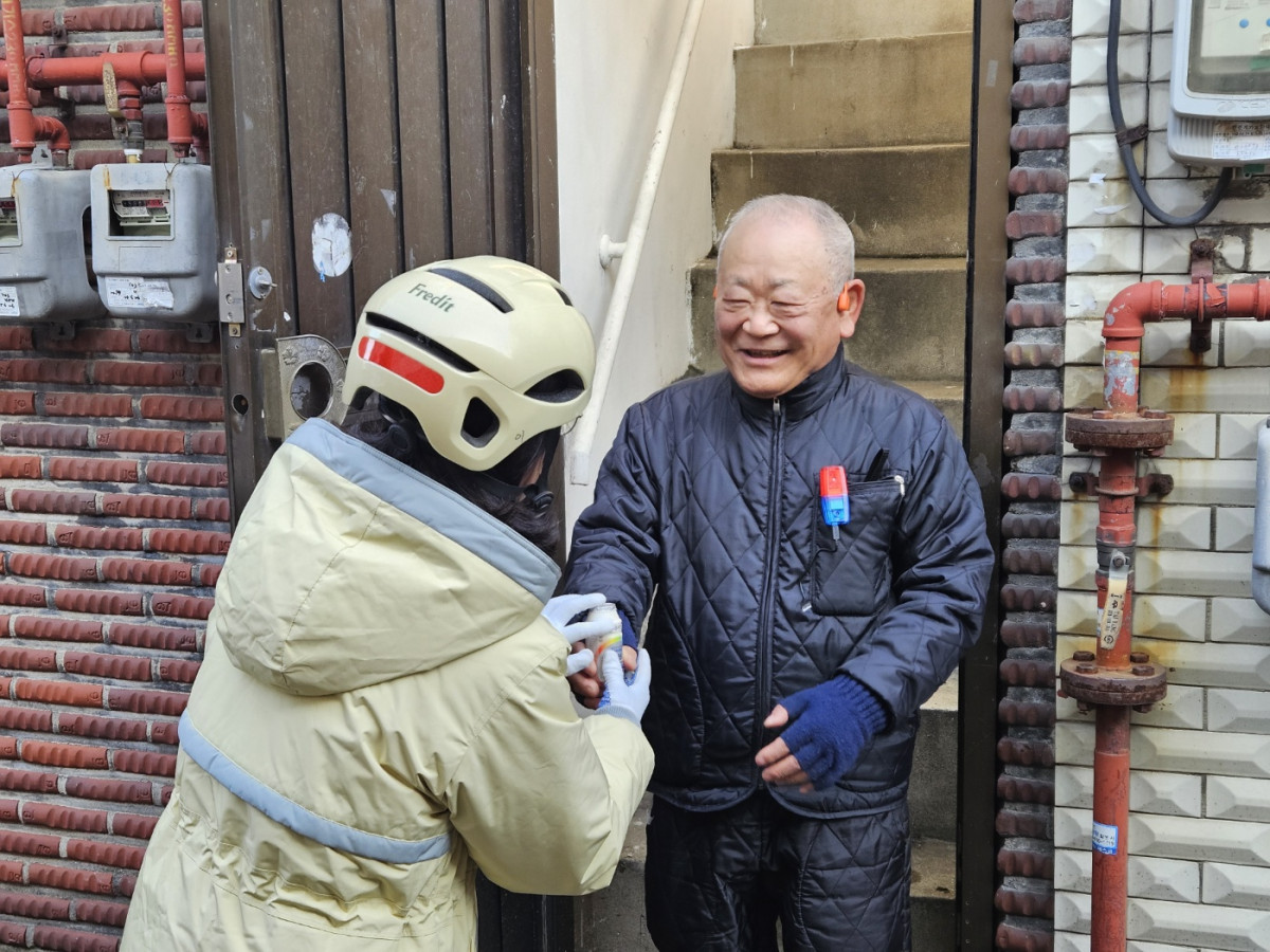 hy 프레시 매니저가 홀몸노인 돌봄활동을 하고 있다. |