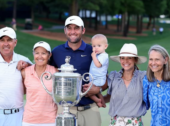 스코티 셰플러(미국)가 지난해 시즌 두 번째 메이저 대회인 PGA 챔피언십에서 우승한 뒤 가족과 기념 촬영을 하고 있다. 스코티 셰플러 SNS