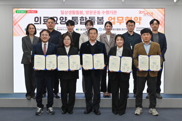 대구 남구(구청장 조재구)는 지난 24일 의료요양통합돌봄 사업의 일환으로 참좋은 재가노인돌봄센터(대표 이영미), 햇빛 재가노인돌봄센터(대표 안창배)와 방문운동 수행기관 물리치료사회 대구시회(대표 장권욱), 위캔방문운동센터(대표 김동우)가 참석한 가운데, 가사, 동행, 방문운동을 수행할 지역 내 기관 4곳과 업무 협약을 체결했다.