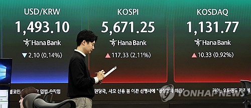 환율은 2.2원 내린 1,493.0원에서 출발해 1,490∼1,494원 부근에서 오르내리고 있다.