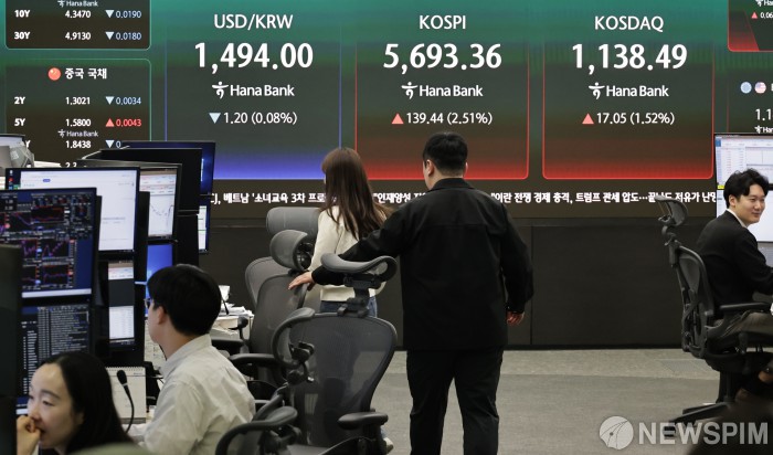[서울=뉴스핌] 양윤모 기자= 미국과 이란 간 협상 기대감이 커지는 25일 오전 코스닥이 전장 종가보다 17.05 포인트(1.52%) 상승한 1138.49로 거래를 시작한 가운데, 서울 중구 하나은행 을지로본점 딜링룸에서 직원들이 업무를 보고 있다. 2026.03.25 yym58@newspim.com |