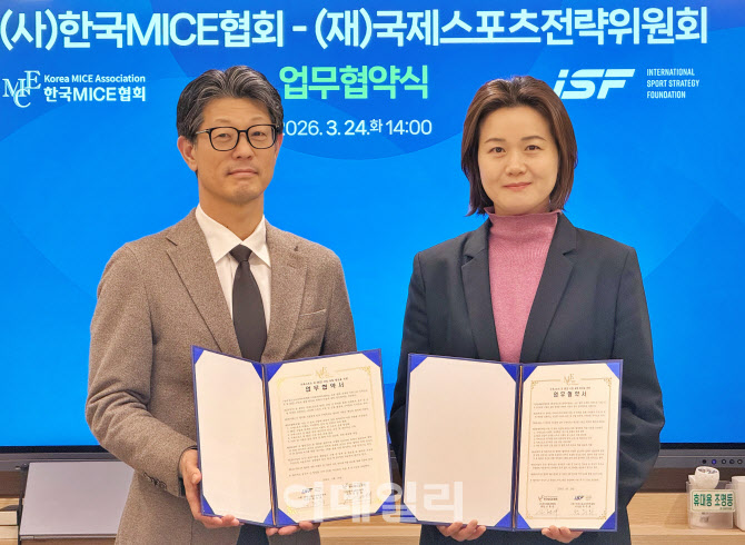 [이데일리 이선우 기자] 한국마이스협회와 국제스포츠전략위원회는 24일 업무협약(MOU)을 맺고 ‘스포츠와 마이스 산업 융합 발전’을 위한 협력에 나서기로 했다. 이번 협약은 단순 교류를 넘어 양 기관과 업계의 전문성과 네트워크를 활용한 ‘스포츠 마이스’ 산업 활성화의 실질적 성과 창출을 위해 마련됐다.