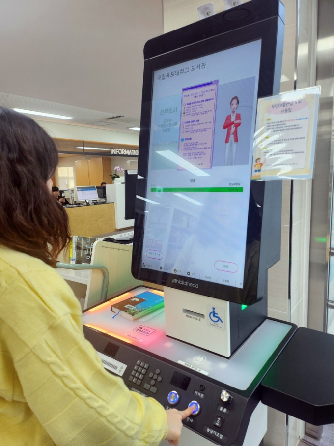 국립목포대학교 도서관에 설치 된 배리어 프리 도서 대출·반납 시스템. /사진제공=목포대학교 |