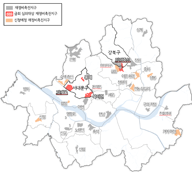 이번 일괄 정비 대상은 강북구 미아사거리역 지구단위계획구역과 서대문구 가재울·북아현·아현·홍제 지구단위계획구역이다. 존치관리구역은 재정비촉진지구 안에서도 촉진사업 지정요건에 해당하지 않거나 기존 시가지를 유지·관리할 필요가 있는 곳을 뜻한다.