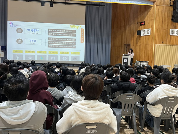 센터는 지난18일 대흥중학교를 방문해 강당에서 전교생 143명을 대상으로 청소년 자원봉사 순회교육을 실시했다.