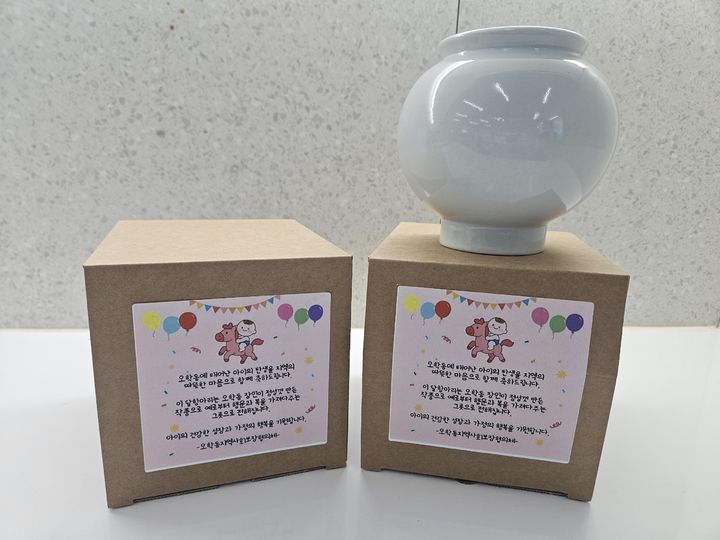 출생 신고를 마친 가정에 전달될 '소형 달항아리'는 예로부터 풍요와 복, 행운을 상징하는 전통 도자기다. 달항아리의 둥근 형태처럼 아이가 원만하고 건강하게 성장하기를 바라는 마음과 가정에 복이 가득 담기길 기원하는 메시지를 함께 전달할 예정이다.