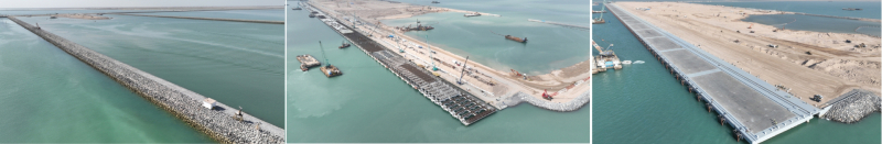 이라크 알포 신항만 컨테이너터미널 안벽공사 현장의 연약지반 처리 및 매립공사가 진행된 모습. 대우건설 |