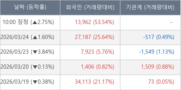 [표] 외국인ㆍ기관 순매매량 (단위 주)