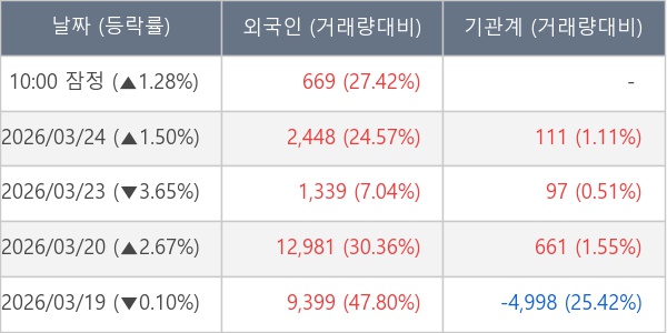 [표] 외국인ㆍ기관 순매매량 (단위 주)