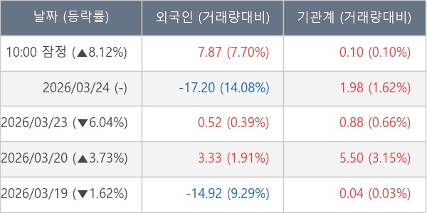 [표] 주요 기관별 순매매량 (단위 만주)