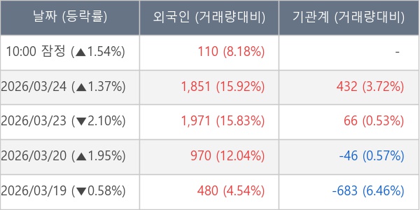 [표] 외국인ㆍ기관 순매매량 (단위 주)