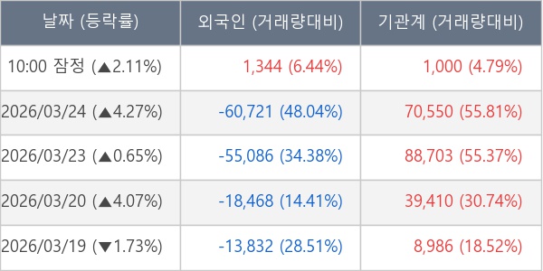 [표] 주요 기관별 순매매량 (단위 주)