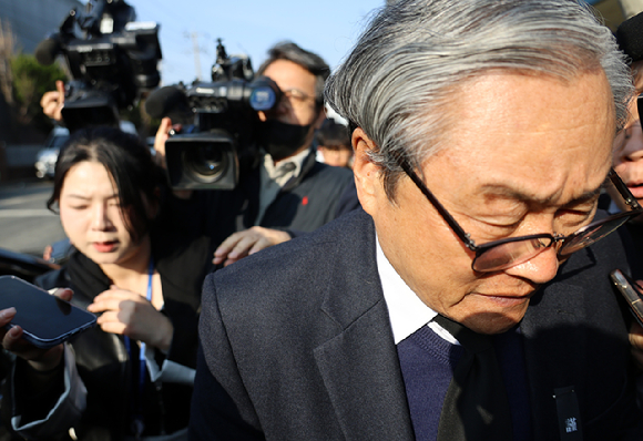 대형 화재로 74명의 사상자가 발생한 대전 안전공업의 손주환 대표이사가 지난 23일 오후 합동 감식과 압수수색이 진행 중인 안전공업 본사를 떠나고 있다. [사진=연합뉴스] |