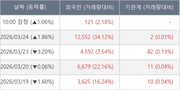 [표] 외국인ㆍ기관 순매매량 (단위 주)