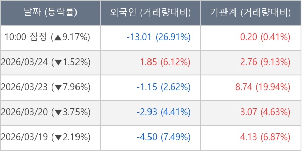 [표] 외국인ㆍ기관 순매매량 (단위 만주)