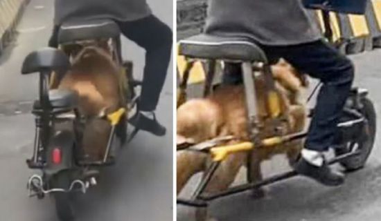 중국에서 반려견을 전기자전거의 '동력'처럼 이용한 영상이 공개되며 동물 학대 논란이 확산하고 있다.
