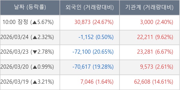 [표] 주요 기관별 순매매량 (단위 주)
