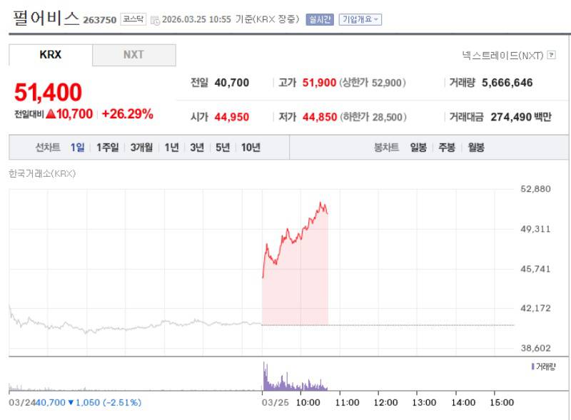 펄어비스가 ‘붉은사막’ 판매 첫날 200만장을 돌파한데 이어, 4일만에 300만장을 넘겼다는 소식을 발표하면서, 주가가 다시 상승세를 보이고 있는 것. 출시 후 4만원대 초반까지 떨어졌던 펄어비스 주가는 300만장 돌파 소식과 함께 다시 5만원대를 돌파했다.