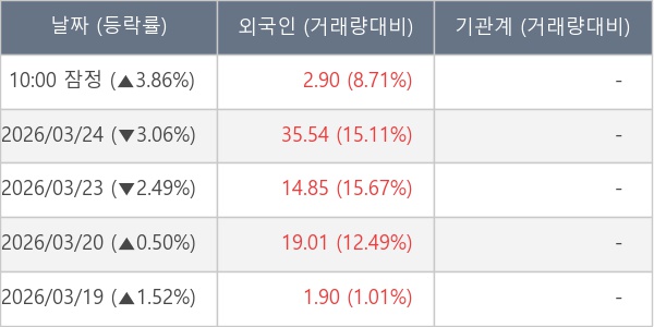 [표] 외국인ㆍ기관 순매매량 (단위 만주)