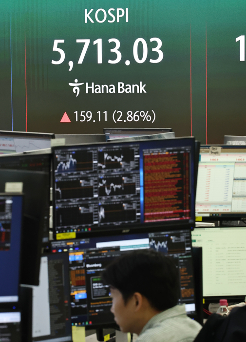 한국거래소에 따르면 이날 오전 11시 5분 기준 코스피는 전 거래일 대비 154.17포인트(2.78%) 오른 5708.09를 기록했다. 지수는 장 초반 5680.33으로 출발한 뒤 한때 5715선까지 오르며 상승 폭을 키웠다.