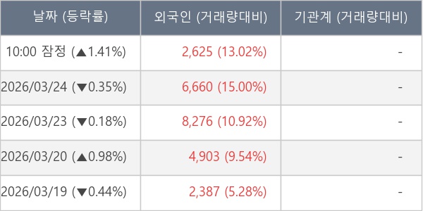 [표] 외국인ㆍ기관 순매매량 (단위 주)
