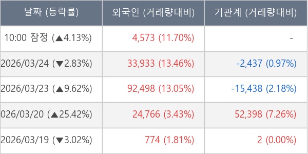 [표] 외국인ㆍ기관 순매매량 (단위 주)