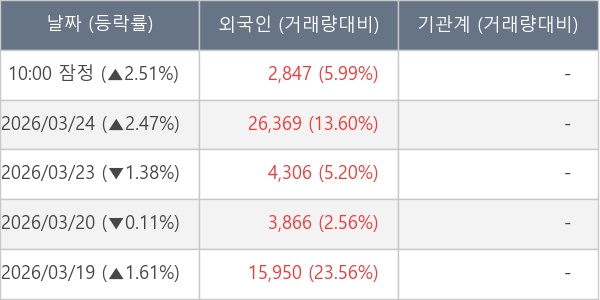 [표] 외국인ㆍ기관 순매매량 (단위 주)