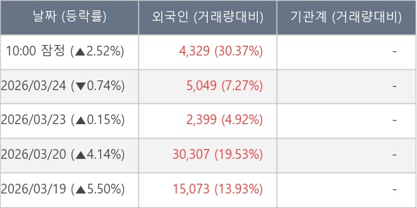 [표] 외국인ㆍ기관 순매매량 (단위 주)