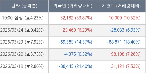 [표] 주요 기관별 순매매량 (단위 주)