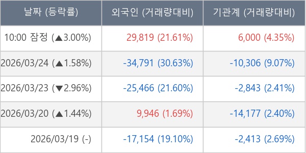 [표] 주요 기관별 순매매량 (단위 주)