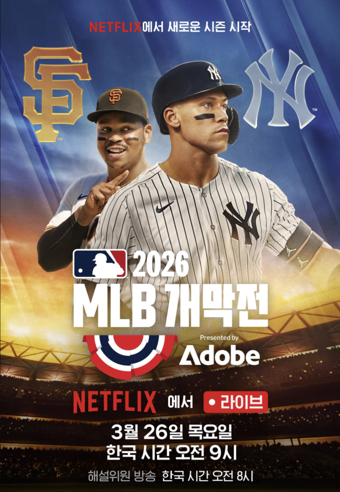 넷플릭스가 오는 26일 오전 9시 미국 캘리포니아 샌프란시스코 오라클 파크에서 열리는 '뉴욕 양키스'와 '샌프란시스코 자이언츠'의 MLB 개막전을 생중계한다고 25일 밝혔다. 샌프란시스코 자이언츠는 이정후의 소속팀이다.